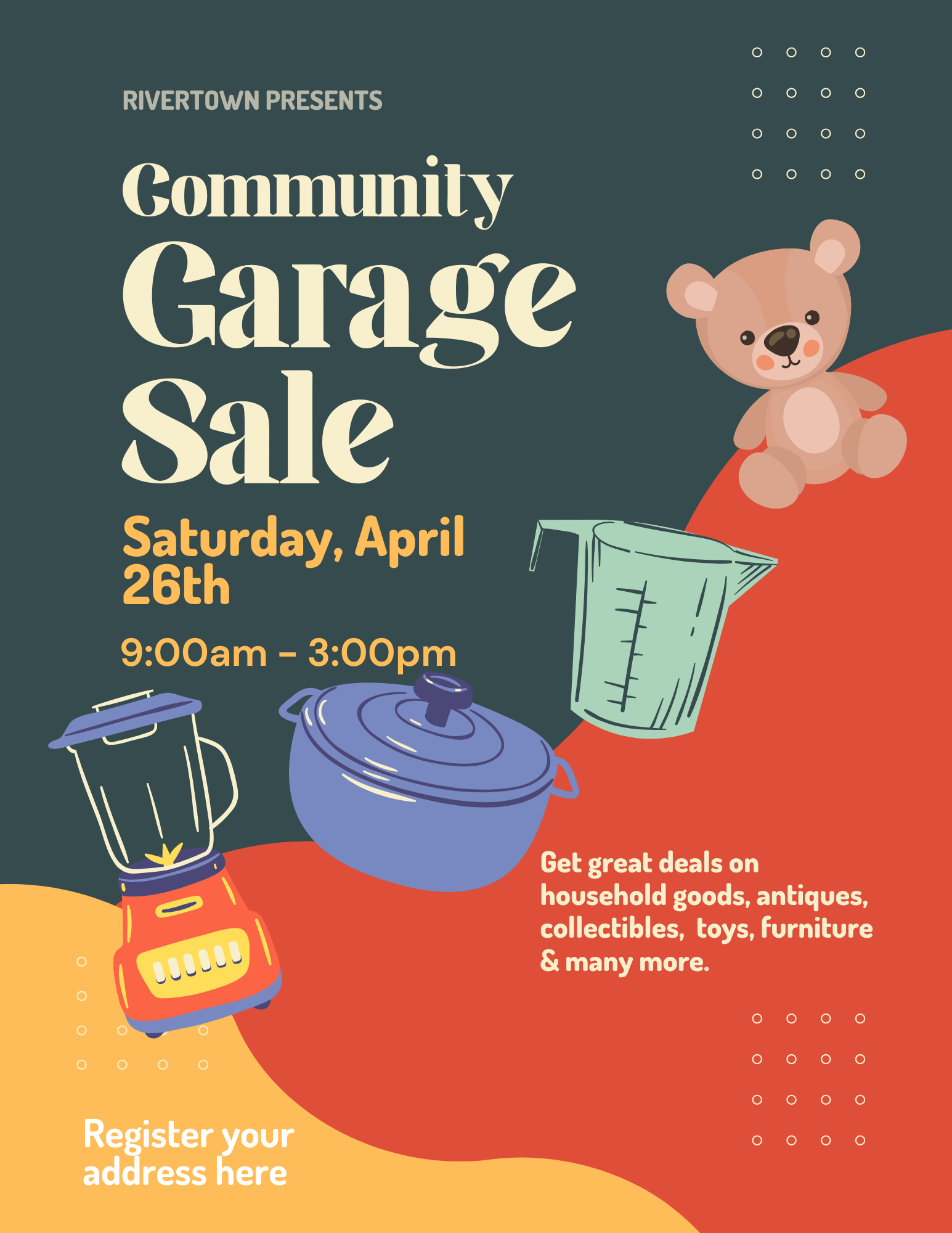 Community Garage Sale + Add to Google Calendar + iCal / Outlook export Date Apr 26 2025 Expired! Time 9:00 am - 3:00 pm